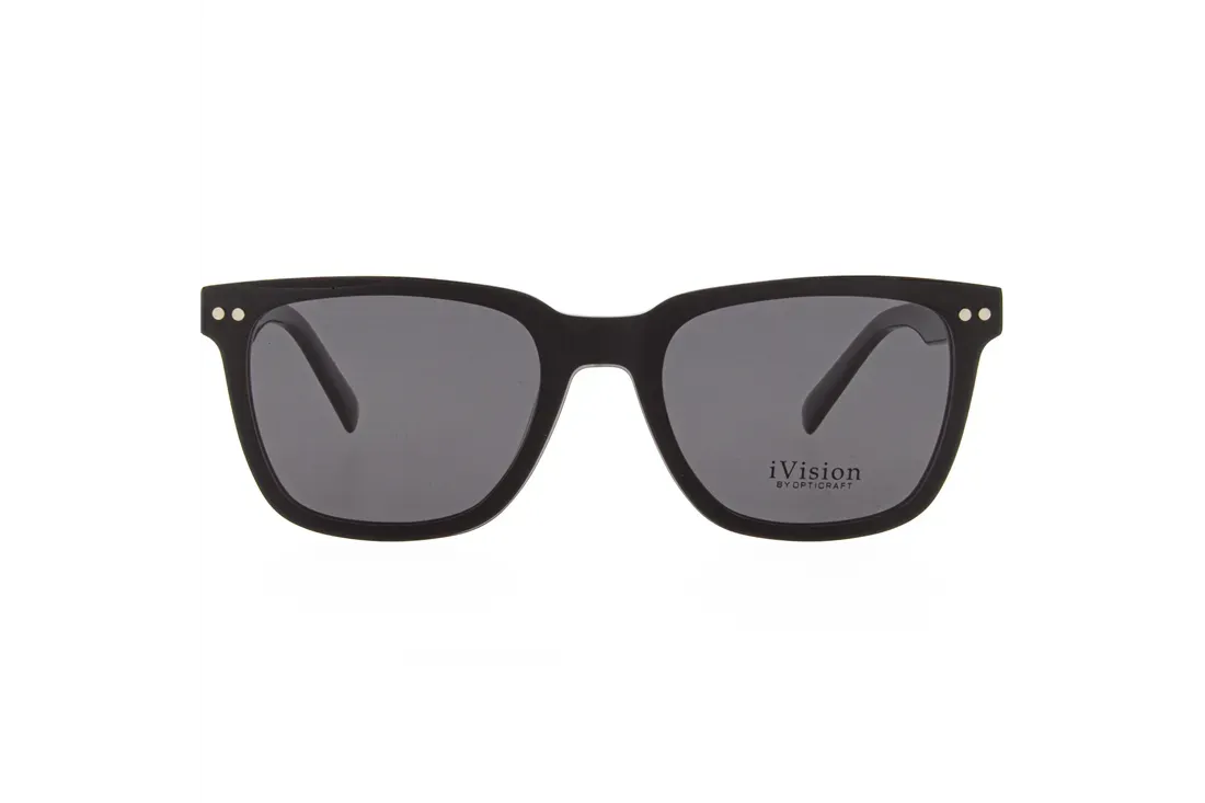 Experience the perfect blend of style and functionality with these Ivision by Opticraft glasses. Designed with a sleek black plastic frame, they offer a modern, rounded shape that suits any face, making them ideal for both men and women. The standout feature is the innovative front attachment, allowing you to easily switch between clear lenses and a polarized gray clip-on for enhanced sun protection.