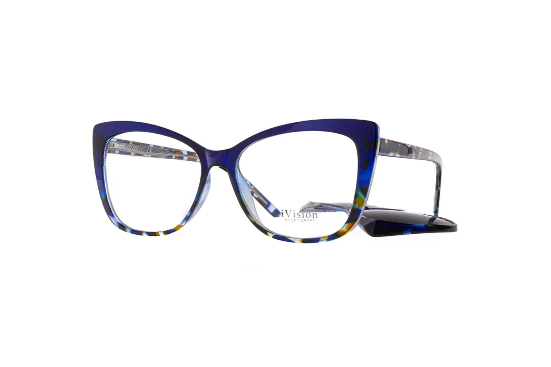 Discover the perfect blend of style and function with the Ivision by Opticraft előtétes szemüveg. Featuring a bold, cat-eye frame in vibrant blue with subtle multicolor accents, these glasses add a touch of elegance to any look. Designed for comfort and durability, they offer clear vision and a fashionable edge. Ideal for everyday wear, this eyewear effortlessly combines modern design with practical use. Elevate your style with these standout frames that make a statement wherever you go.