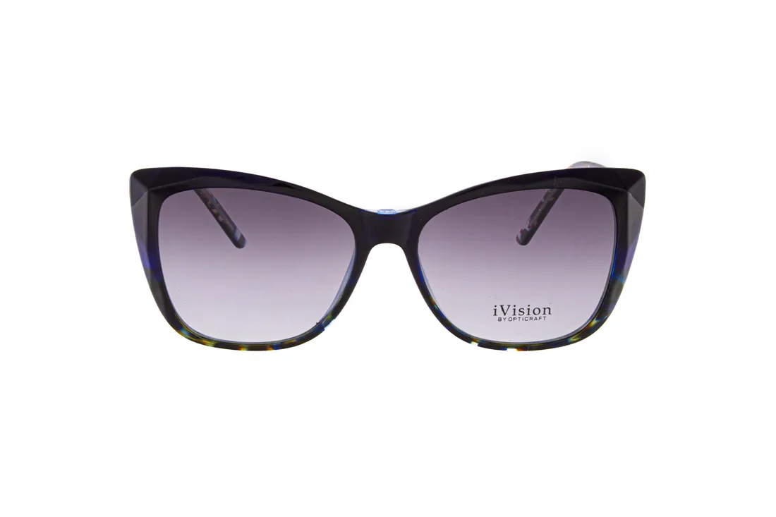 These Ivision by Opticraft glasses combine style and functionality in a stunning butterfly-shaped frame designed specifically for women. The vibrant blue plastic front adds a bold touch to your look, while the round frame shape offers a modern yet timeless appeal. The glasses feature a front attachment, allowing for easy customization and versatility.