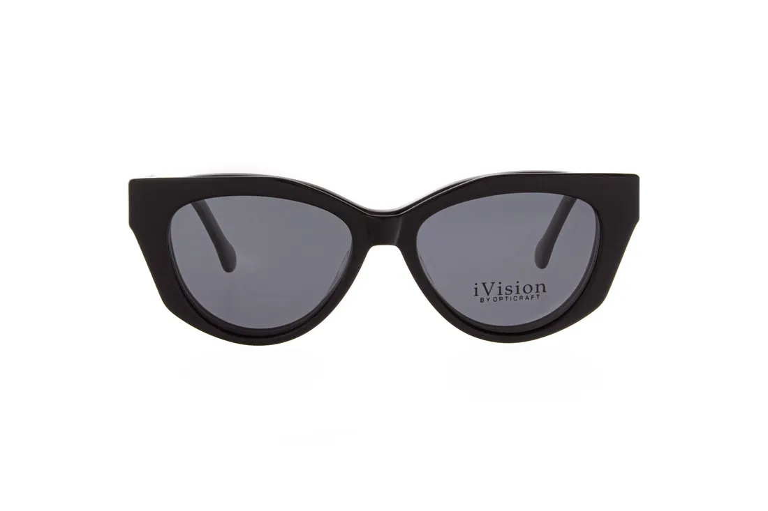 Discover the perfect blend of style and functionality with these Ivision by Opticraft sunglasses designed specifically for women. The sleek black plastic frame offers a timeless rounded shape that complements any face, providing a chic and modern look. The integrated clip-on feature adds versatility, allowing you to switch effortlessly between clear lenses and polarized gray lenses for optimal eye protection.