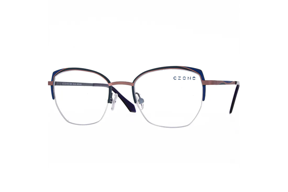 The C-zone eyewear is a high-quality, semi-rimmed optical frame crafted with a stainless steel front section, ensuring long-lasting durability and reliable resilience. The frame’s rounded shape and blue-green color combination provide a modern yet timeless appearance, perfectly suited to the facial contours of both children and women. Its lightweight yet robust design offers comfortable all-day wear, while the temples harmoniously follow the head’s natural line, preventing pressure points or discomfort.