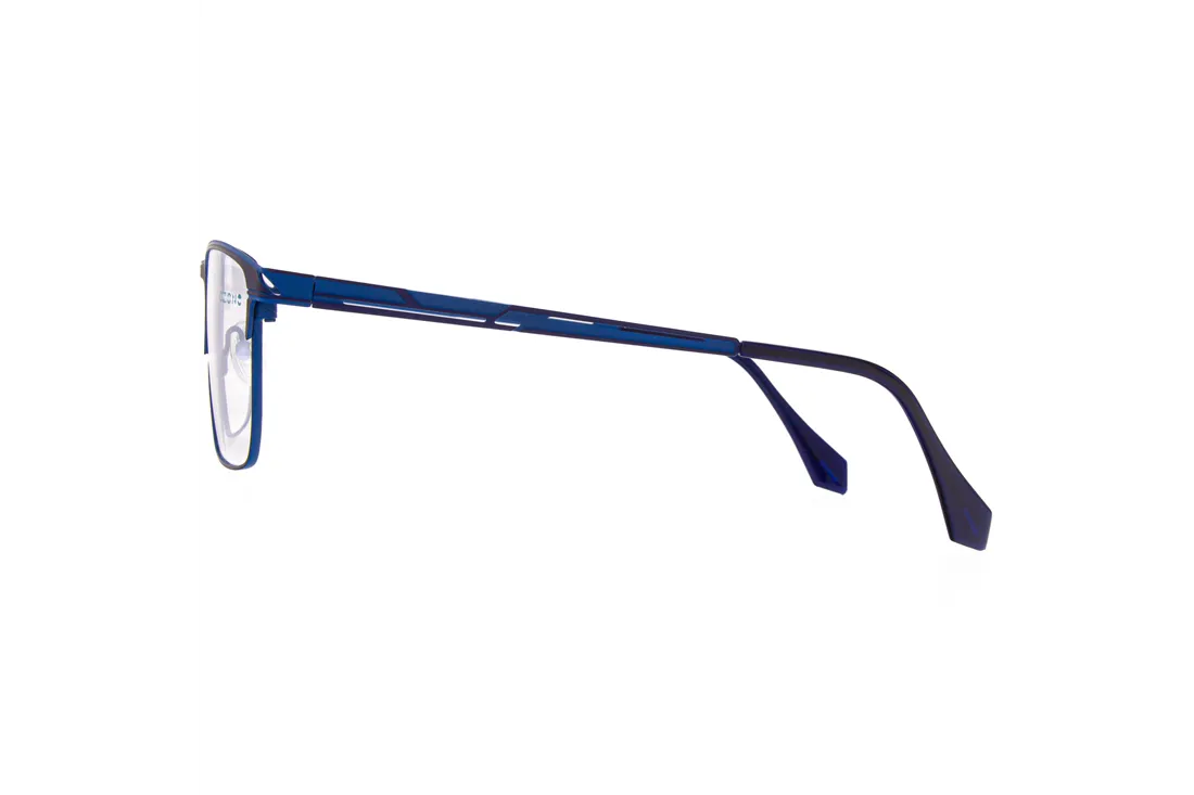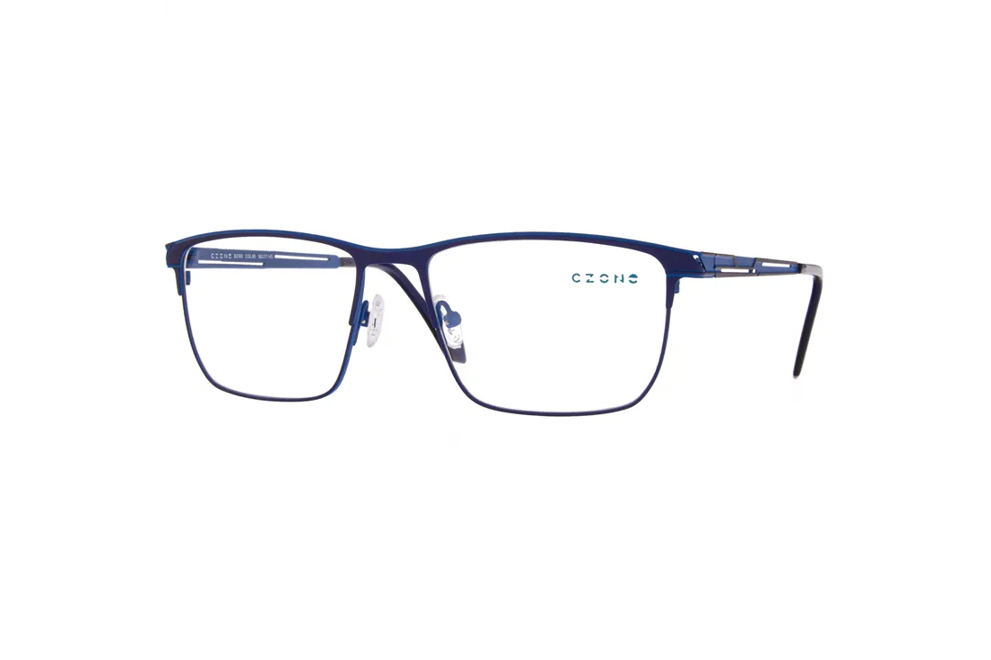 The C-zone eyewear for men features a high-quality stainless steel front frame, ensuring durability and long-lasting performance. Its full-rim, rectangular design offers a modern aesthetic while providing stable support. The blue frame and temples create a harmonious unit, easily adaptable to various lens types. This model is an ideal choice for optical retailers where reliability and style are equally prioritized.