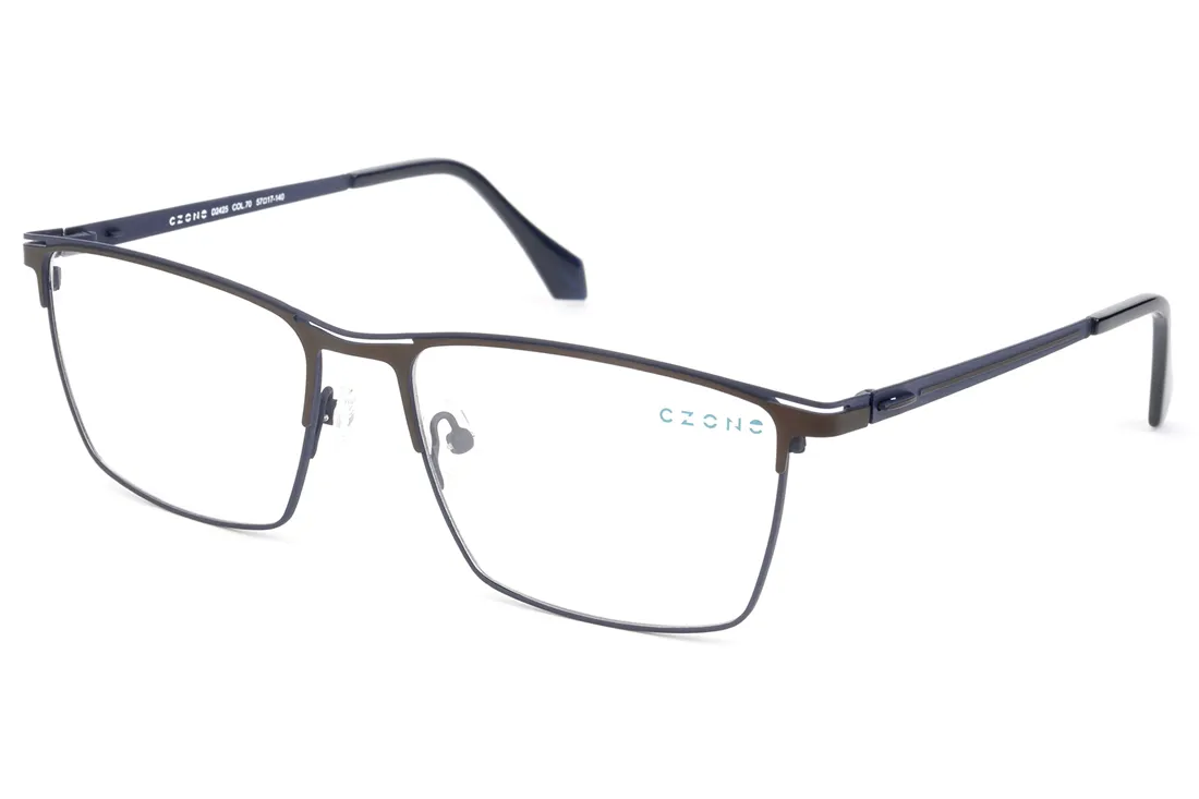 The C-zone eyewear is a high-quality, full-rim optical frame designed with the needs of modern men in mind. The front piece is crafted from stainless steel, making the frame both lightweight and exceptionally durable, maintaining its shape and stability over time. The harmonious blend of brown and blue tones offers an elegant yet youthful appearance that seamlessly complements various styles.