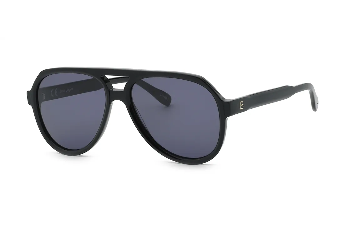 The Laura Biagiotti sunglasses feature an elegant aviator design with a black plastic front frame and grey lenses. The lenses are equipped with built-in UV protection, providing effective defense against harmful sun rays while delivering a modern, masculine appearance. The black temples complement the frame’s sleek design, seamlessly integrating with various optical collections.