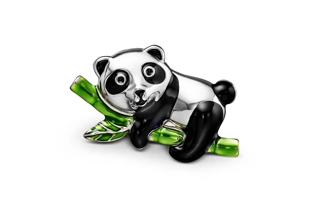 This charming Cloozz glasses charm captures the playful spirit of a panda resting on a vibrant green bamboo branch. Crafted from high-quality 925 sterling silver, the base material ensures durability and a polished shine that lasts. The detailed black and white enamel work highlights the panda’s distinctive markings, creating a delightful contrast against the silver. The green bamboo adds a fresh pop of color, making the charm visually appealing and unique.