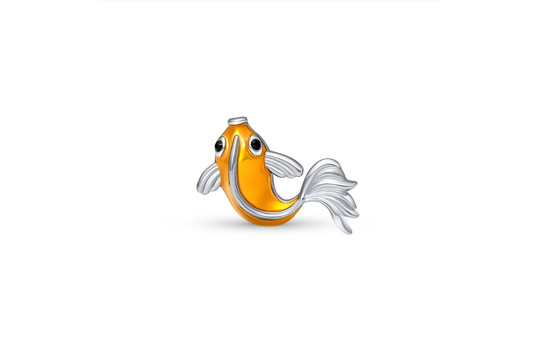 This Cloozz glasses charm brings a touch of charm and personality to your eyewear. Crafted from 925 Sterling Silver, it offers durability and a polished shine that lasts. The vibrant orange koi fish design is enhanced with pure crystals, adding a subtle sparkle that catches the light beautifully. Its smooth finish and detailed fins create a lifelike appearance, making it a unique accessory for your glasses.
