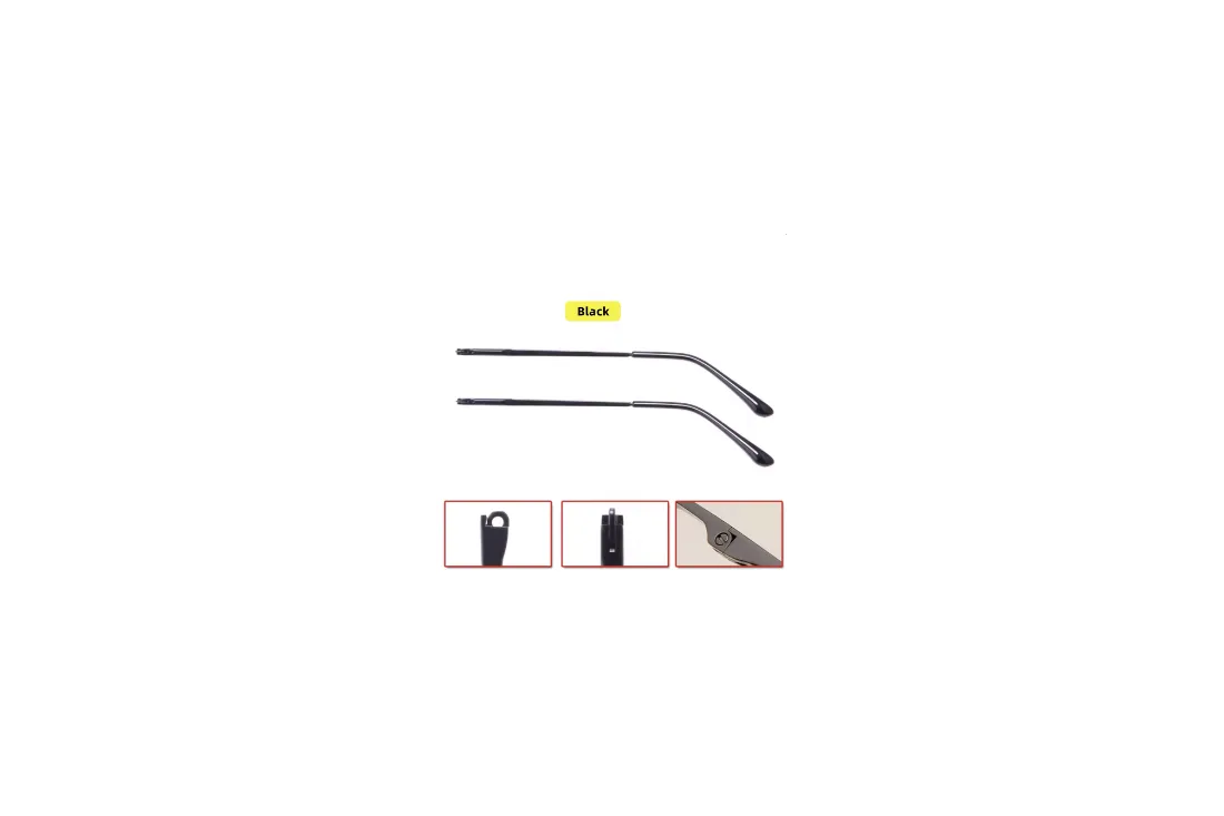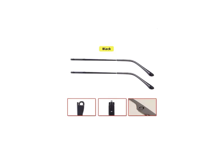 This black metal eyeglass temple features a spring hinge for extra flexibility and comfort, adapting naturally to the wearer’s head shape. The sturdy metal construction ensures durability and a premium look, making it perfect for repairing or replacing damaged temples. Designed for professional optical workshops or DIY repairs.
