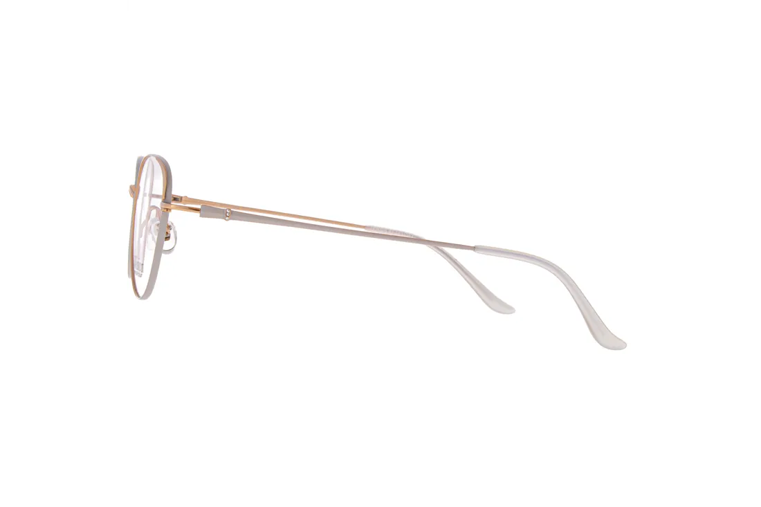 The Ivision by Opticraft eyewear is a sophisticated, full-rimmed women’s optical frame that offers exceptional durability and lightweight comfort, thanks to its titanium front construction. The elegant combination of gold and white hues, along with the rounded cat-eye design, provides a modern and feminine aesthetic that complements a wide range of face shapes. The meticulously engineered bridge and comfortable temples ensure long-term wearability, while the premium materials maintain the frame’s exclusive character.