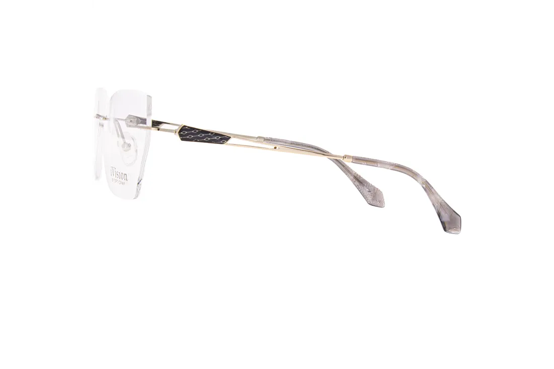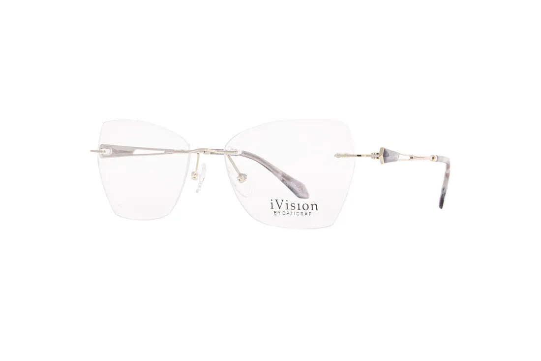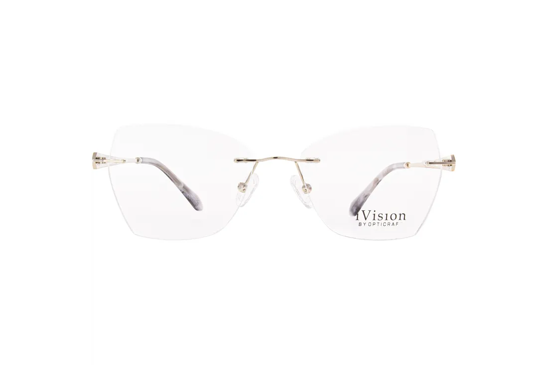 The Ivision eyewear features a refined rimless design, standing out as an exceptional choice among contemporary optical frames. The metal front piece, finished in a sophisticated grey tone, offers an elegant yet understated appearance, perfectly catering to the preferences of female customers. Its geometric shape imparts a distinctive style, while the rimless construction ensures an expanded field of vision and comfortable wear.