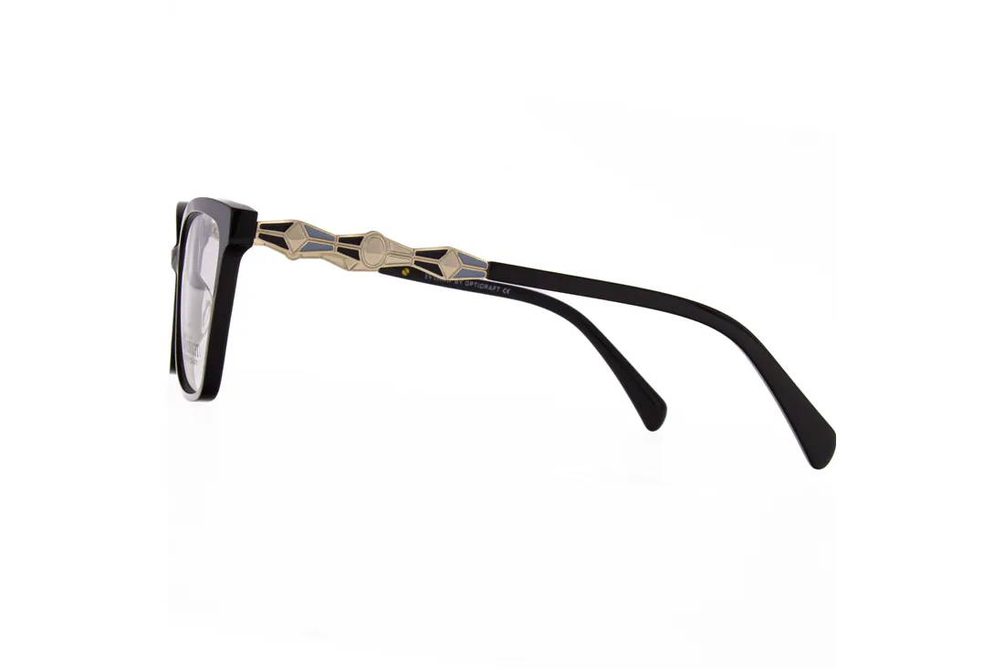 The gold temples provide a subtle yet striking contrast to the black front, enhancing the overall aesthetic with a hint of luxury. Crafted with attention to detail, the frame ensures a comfortable fit while maintaining durability. The carefully measured bridge and temple sizes contribute to a secure and balanced feel, ideal for long hours of use.