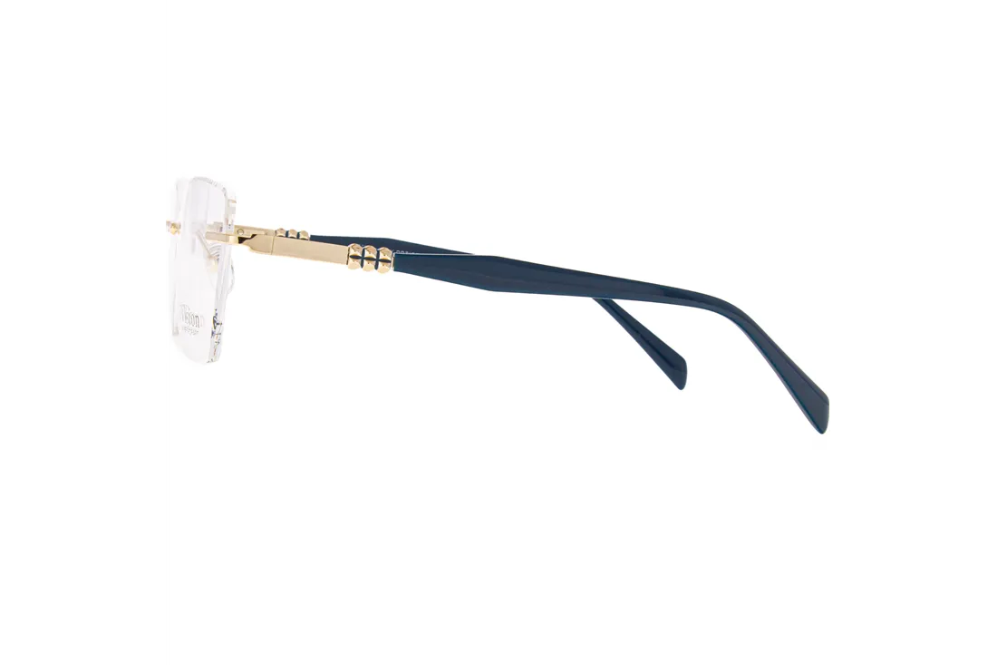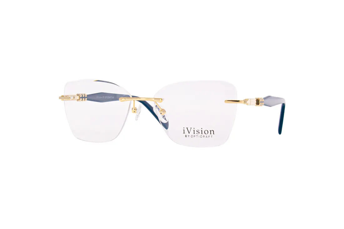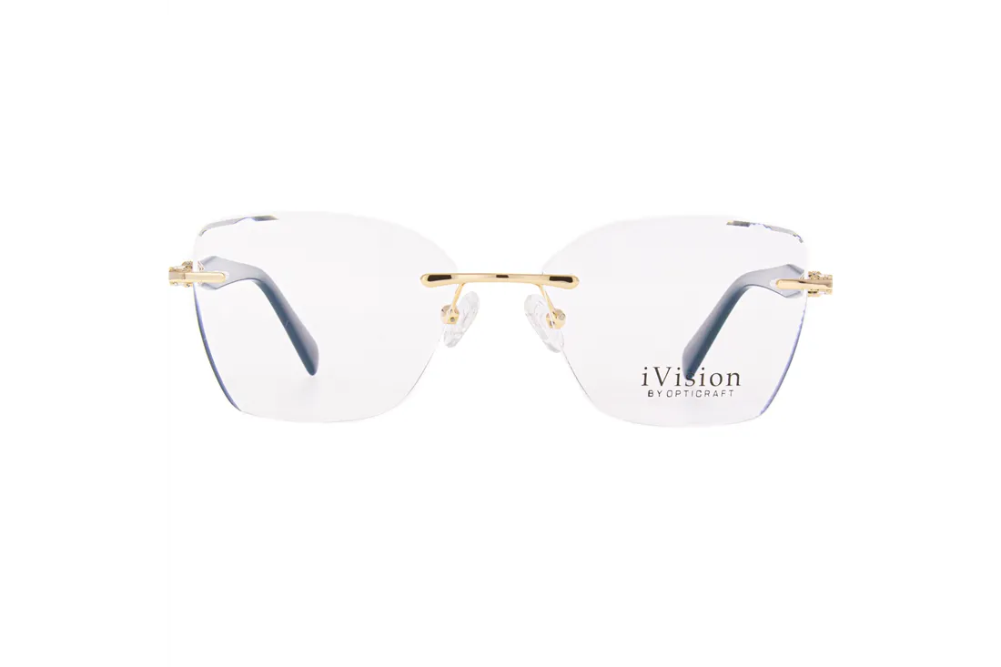 These Ivision glasses offer a perfect blend of style and sophistication for women who appreciate subtle luxury. Featuring a rimless frame, the design highlights a sleek, rounded shape that complements any face shape with grace. The front material is crafted from durable metal in a rich gold color, adding a touch of timeless elegance to your look.
