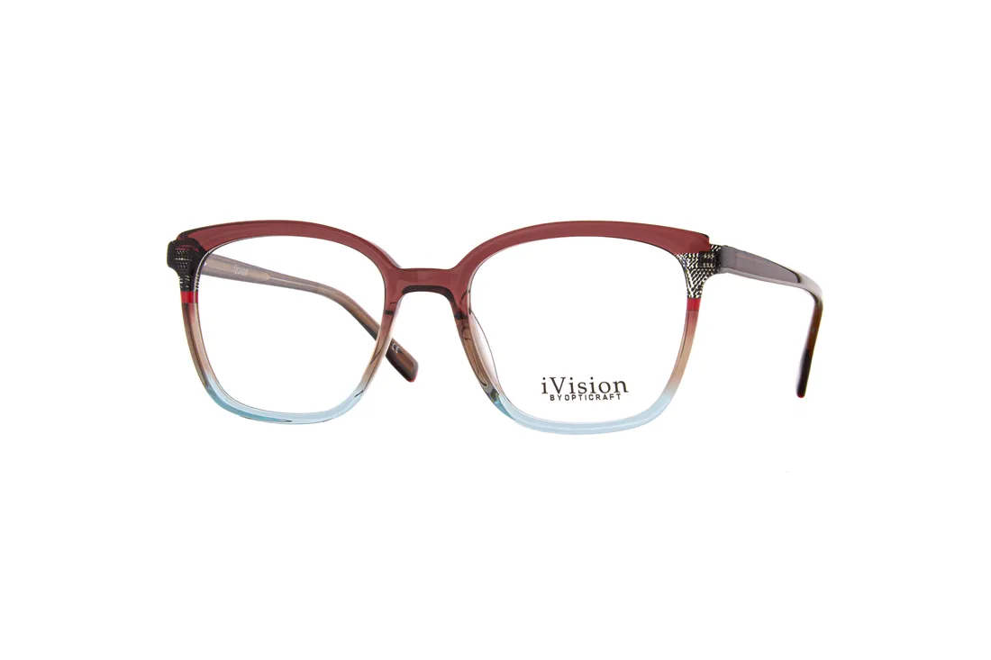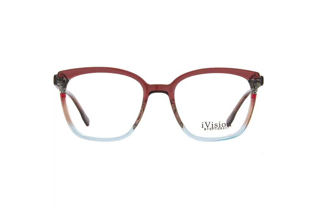 Utilizing precise manufacturing technologies, the Ivision brand ensures compatibility with various prescription lenses, making this model widely applicable within optical retail assortments. It is designed for customers who value both fashionable appearance and functionality, with the burgundy and translucent tones conveying a unique, natural harmony.