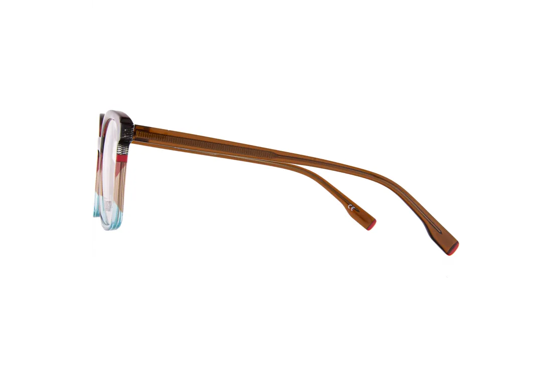 The Ivision by Opticraft eyewear presents an elegant women’s optical frame that combines a modern square design with a refined burgundy and translucent plastic front, complemented by harmonizing brown temples. The full-rim construction not only ensures an aesthetically pleasing appearance but also guarantees exceptional durability and stability, making it an ideal choice for everyday use. Thanks to high-quality materials, the frame offers long-lasting performance while maintaining lightness and comfort, which is particularly important for continuous wear.