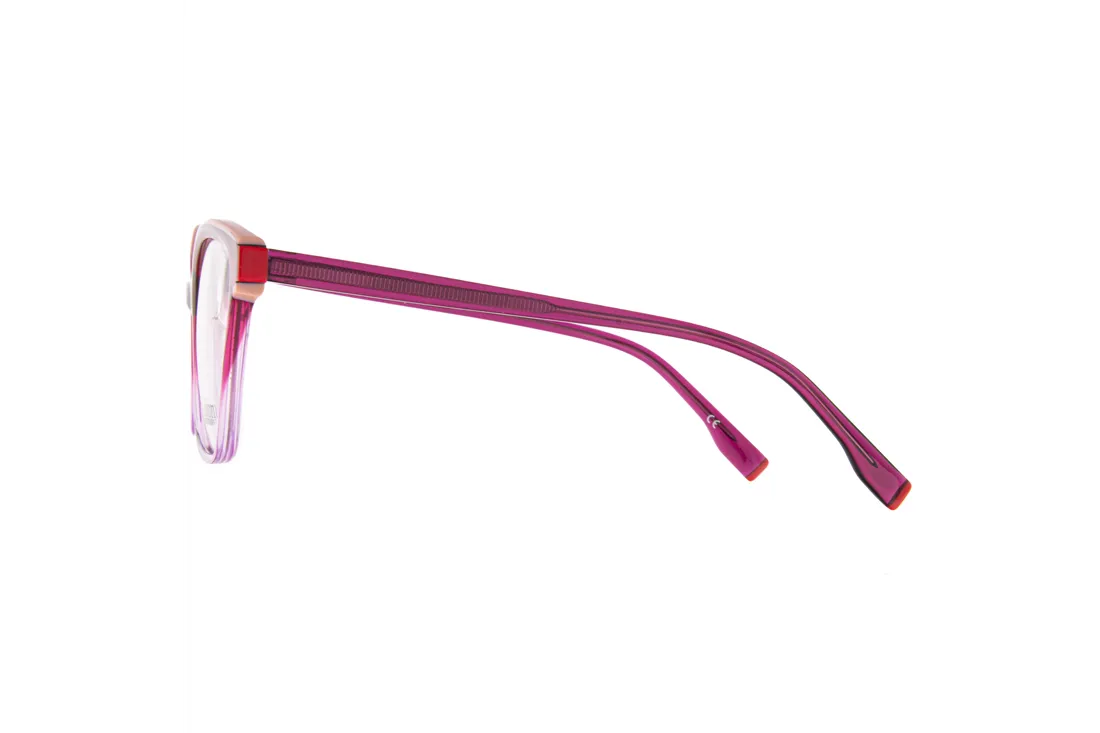 The Ivision by Opticraft eyewear presents a refined women’s optical frame that combines the fashionable butterfly shape with a pink and translucent plastic front, complemented by harmoniously matching pink temples. The full-rim design not only ensures an aesthetically pleasing appearance but also guarantees exceptional durability and stability, making it an ideal choice for everyday use. Thanks to premium-quality materials, the frame offers long-lasting performance while maintaining lightness and comfort, which is particularly important for continuous wear.