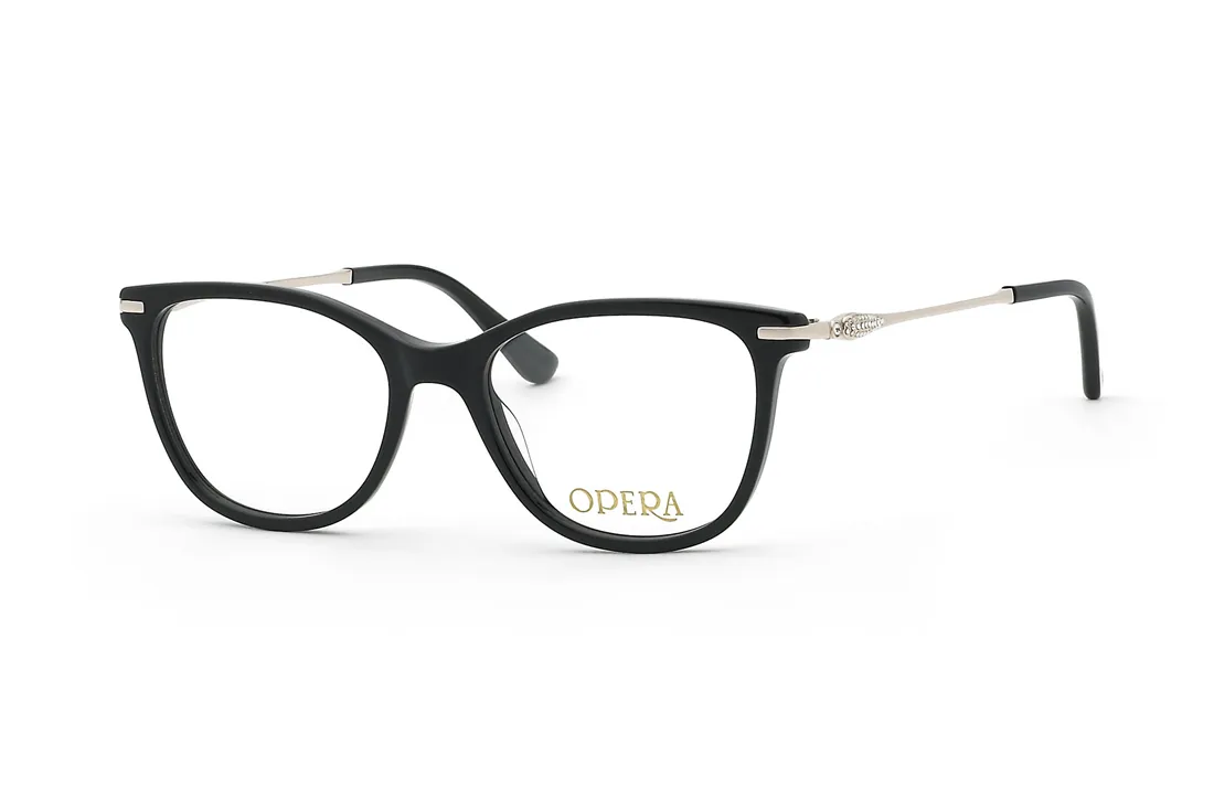 Discover elegance with Opera eyeglasses, featuring a sleek black frame paired with delicate silver temples. These glasses blend classic style with modern sophistication, perfect for everyday wear or special occasions. Lightweight and comfortable, they offer a refined look that enhances any outfit. Elevate your vision and style effortlessly with Opera.
