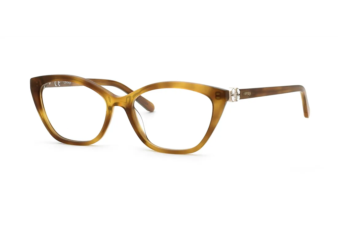 Discover timeless elegance with these Opera eyeglasses. Featuring a sophisticated cat-eye frame in a warm amber hue, they blend classic style with modern flair. Lightweight and comfortable, these glasses are perfect for everyday wear, adding a touch of refinement to any look. The subtle metallic accents enhance their chic design, making them a must-have accessory for those who appreciate both fashion and function. Elevate your eyewear collection with the distinctive charm of Opera.