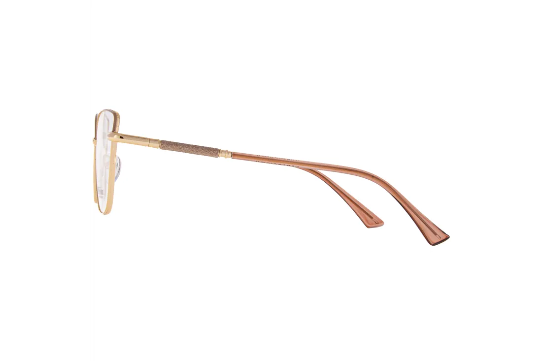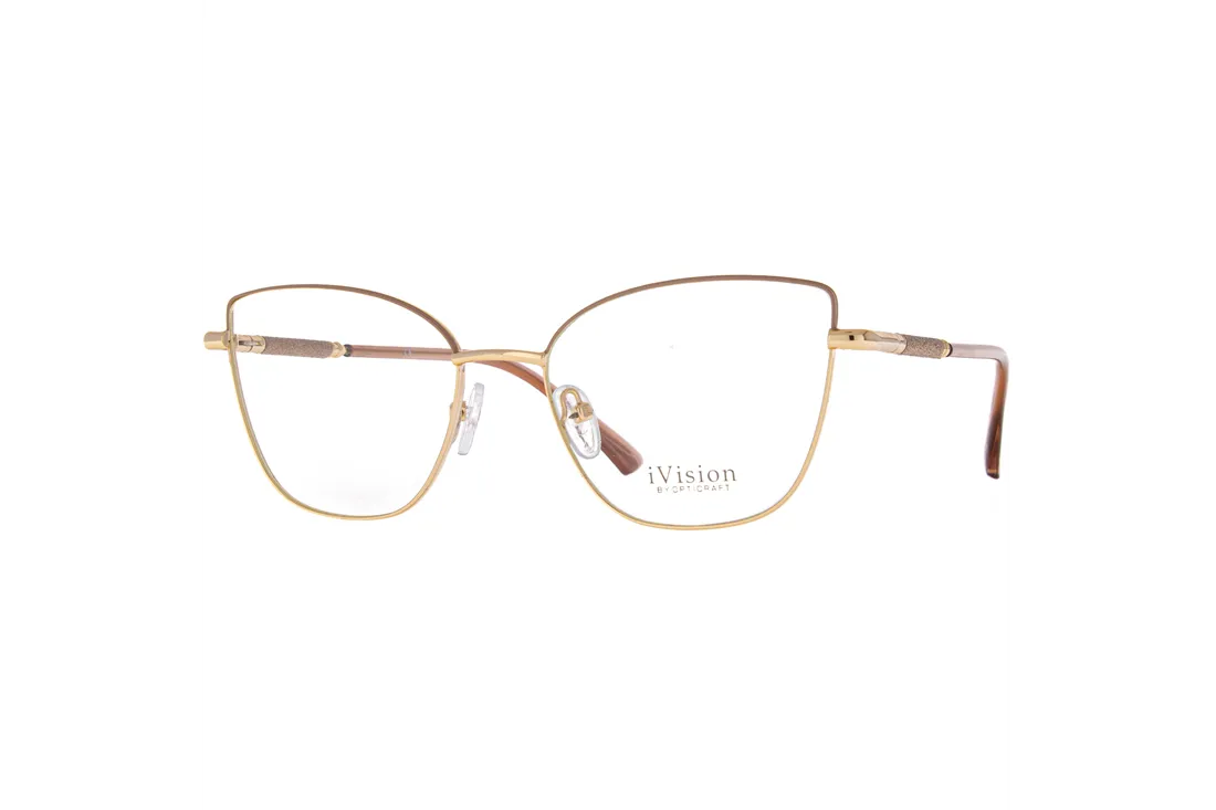 These elegant Ivision by Opticraft glasses are designed specifically for women who appreciate style and sophistication. Featuring a delicate cat's eye shape, the gold metal front adds a touch of luxury and timeless charm to any outfit. The round frame design blends classic and modern elements, making these glasses versatile for both casual and formal occasions.