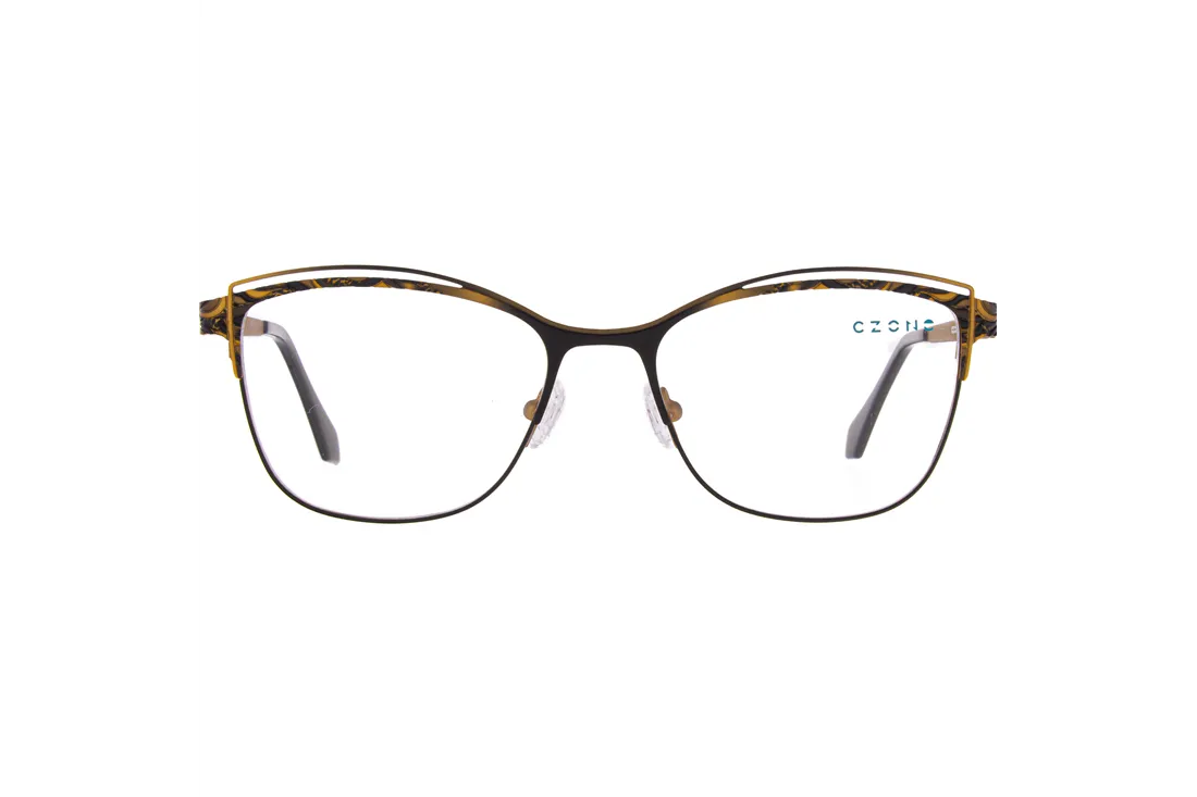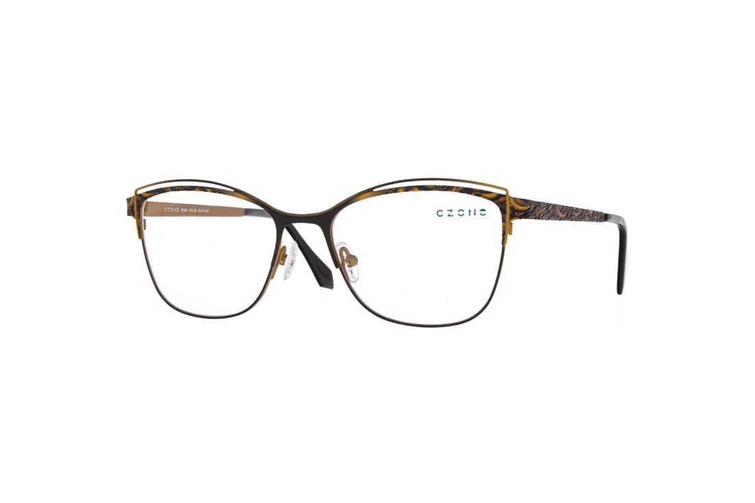 The C-Zone eyewear is an ideal choice for optical retailers who prioritize both quality and fashionable appearance. This women’s model features a stainless steel front frame, which not only boasts aesthetically pleasing brown and black shades but also ensures exceptional durability and long service life. The rounded shape offers an elegant yet modern design that beautifully accentuates the wearer’s feminine facial features.