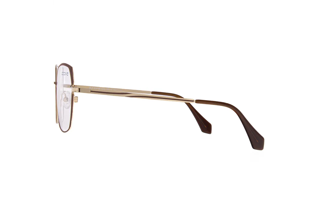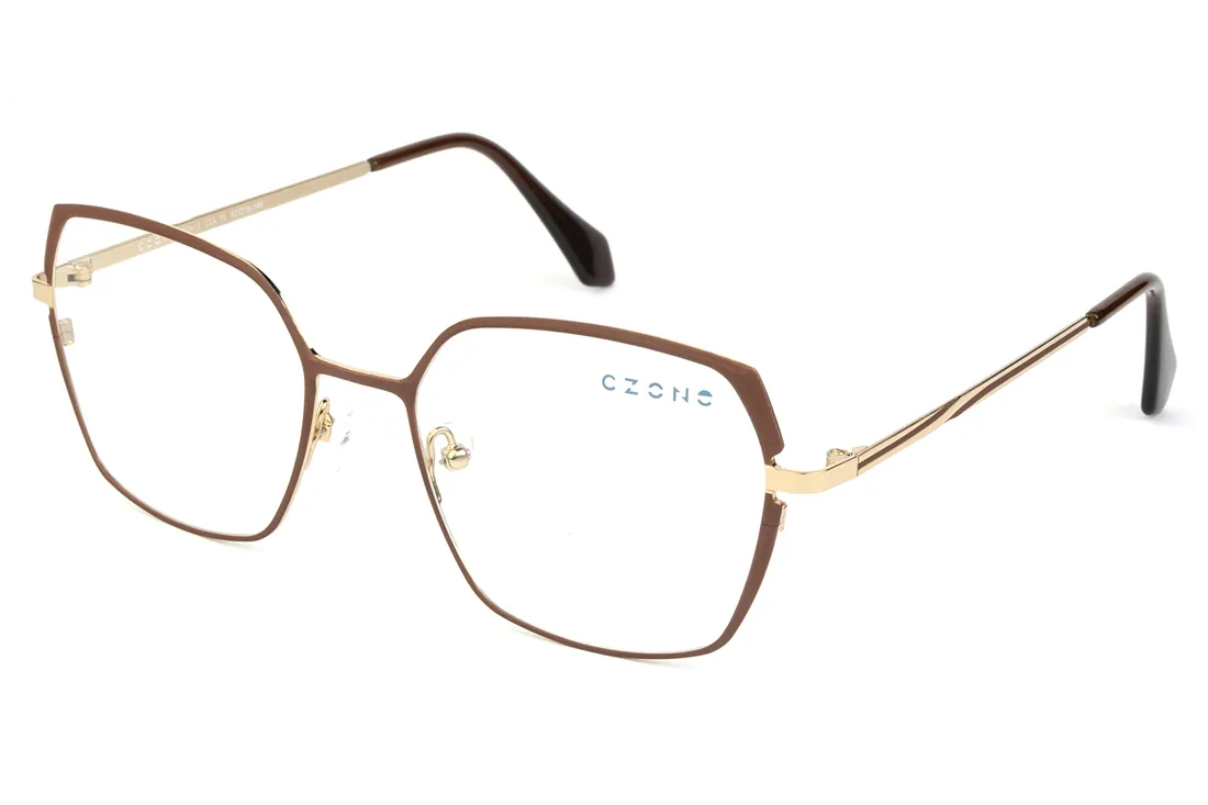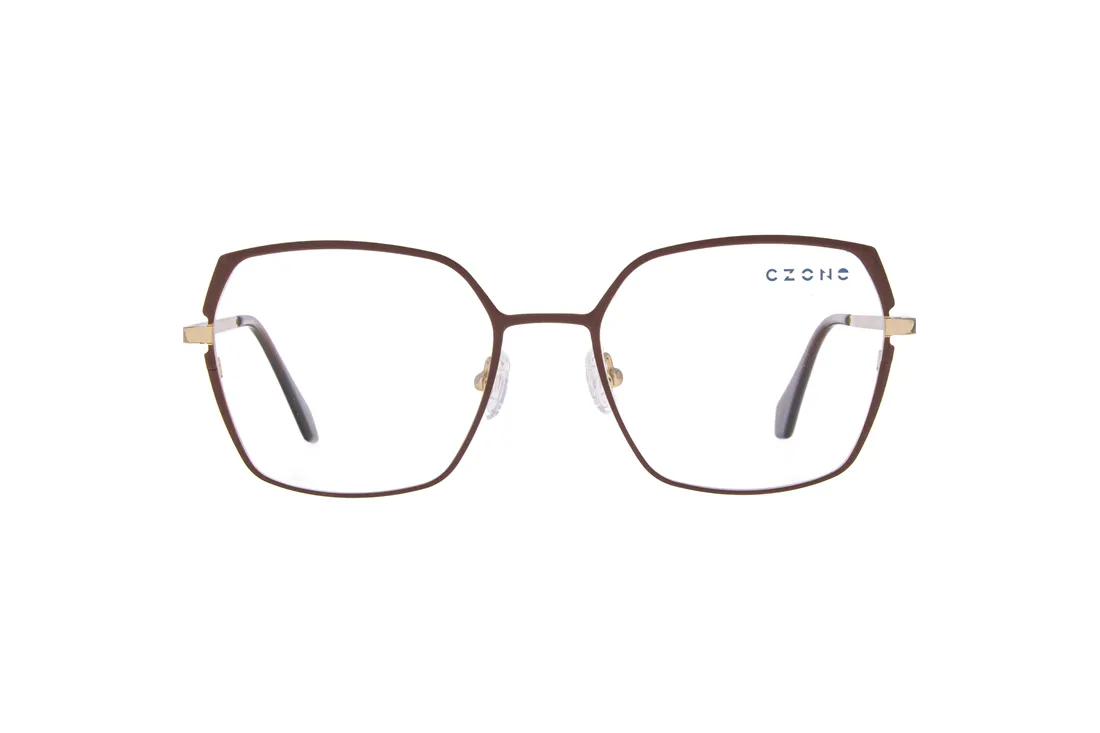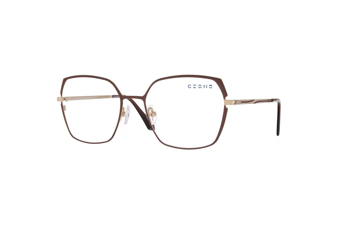 The C-zone eyewear is an ideal choice for optical retailers seeking to expand their offerings with a modern yet timeless appearance. This women's model features a stainless steel front frame that stands out not only for its elegant brown color but also for its exceptional durability. The geometric design imparts a unique character to the frame, while the full-rim construction ensures stability and long-lasting wear.