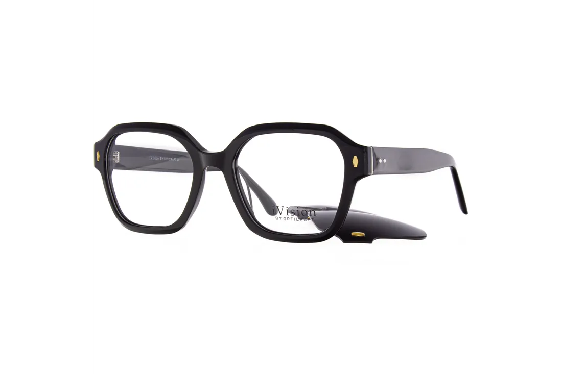 Az Ivision előtétes szemüveg tökéletes választás azoknak a nőknek, akik szeretik a modern, geometrikus formákat és a praktikumot. A teljes keretes, fekete műanyag frontrész elegáns megjelenést biztosít, miközben tartós és könnyű viseletet nyújt. A szárak szintén fekete színűek, így harmonikusan illeszkednek a kerethez.