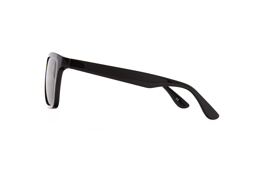 A napszemüveg szára szintén fekete, masszív anyagból készült, amely stabil tartást garantál. A híd és a keret méretei ideálisak a kényelmes illeszkedéshez, így nem nyom vagy csúszik el viselés közben. Ez a modell nemcsak divatos, hanem funkcionális is, kiválóan alkalmas mindennapi használatra, legyen szó városi sétáról vagy autóvezetésről.