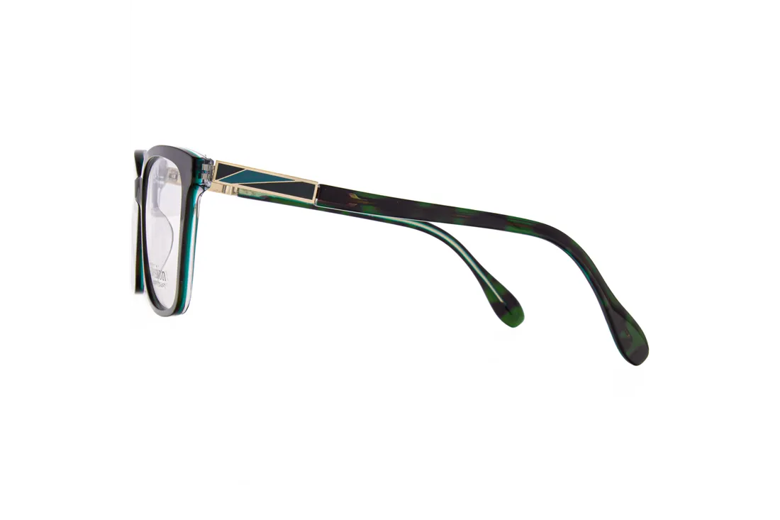 A szemüveg szára ugyancsak zöld színű, harmonizálva a frontrésszel, így egységes és kifinomult összhatást kelt. A kényelmes hídméret és a megfelelő keretmagasság biztosítja, hogy a szemüveg jól illeszkedjen, és ne nyomja az orrnyerget. Ez a modell ideális választás azoknak, akik szeretnének egy praktikus, mégis divatos kiegészítőt, amely kiemeli személyiségüket.