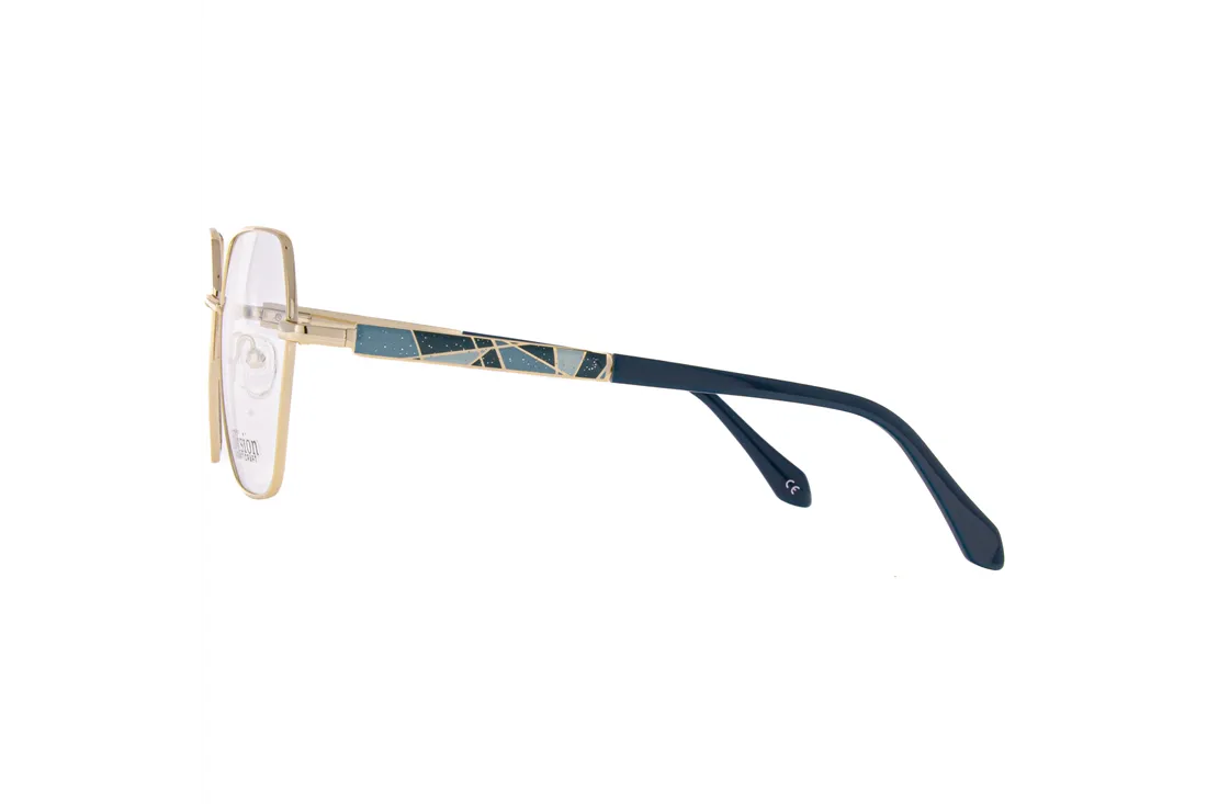 Stílusos és könnyű fémkeretes szemüveg, amely tökéletes választás mindennapi viselethez. Aranyszínű kerete modern, mégis időtálló megjelenést biztosít, míg a kékes szárvégek egyedi dizájnt kölcsönöznek. Kényelmes orrtámaszai és precíz kidolgozása garantálják a hosszú távú komfortot. Ideális azoknak, akik elegáns, mégis visszafogott kiegészítőt keresnek.