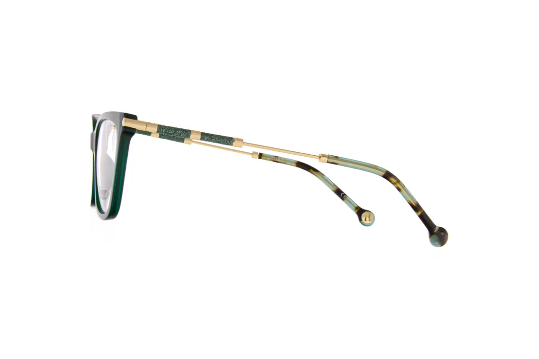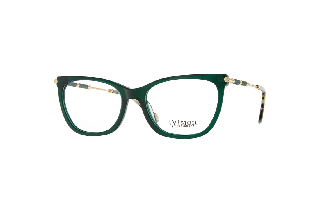 Az Ivision by Opticraft női szemüveg teljes keretes kialakítású, zöld műanyag frontrésszel és arany-zöld szárakkal. Szárain ízléses arany díszítés találató. Masszív anyaghasználata és precíz kidolgozása garantálja a lencsék stabil rögzítését és hosszú élettartamát. Szögletes formája széles lencsetípus-választékhoz illeszkedik, így ideális optikai szaküzletek számára, ahol a tartósság és a funkcionalitás elsődleges szempont.