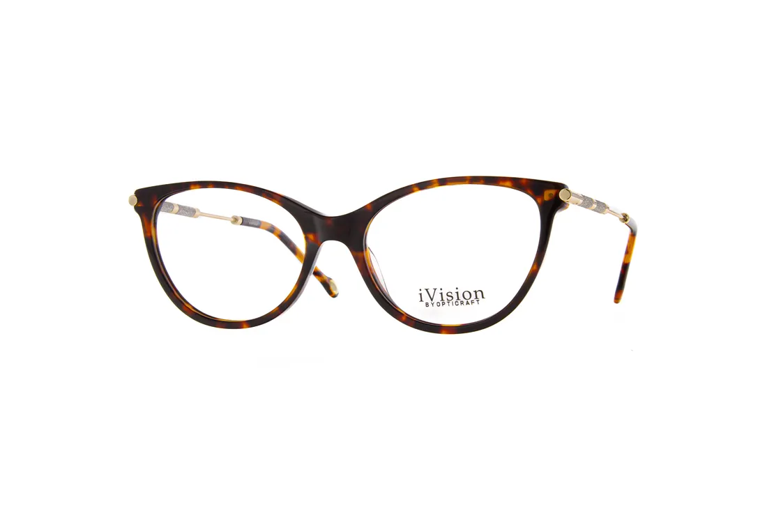 Az Ivision by Opticraft szemüveg egy prémium minőségű, női optikai keret, amely a klasszikus macskaszem formát modern, barna műanyag frontrésszel ötvözi. Az arany és fekete szárak kifinomult kombinációja nemcsak esztétikus megjelenést biztosít, hanem kiemeli a keret egyedi karakterét. A teljes keretes kialakítás stabilitást és hosszú élettartamot garantál, így ideális választás mindennapi használatra, miközben megőrzi formáját és kényelmét.