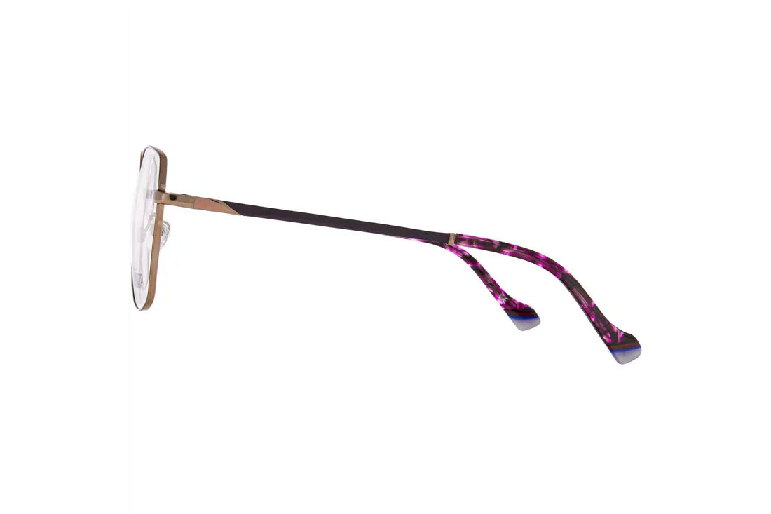 Az Ivision by Opticraft szemüveg egy kifinomult, teljes keretes optikai keret, amely kifejezetten a női vásárlók igényeihez igazodik. A lila színű fém frontrész és a harmonikusan illeszkedő lila szárak modern, mégis időtálló megjelenést biztosítanak, miközben a lekerekített forma kényelmes és stabil viseletet garantál. A gondosan kialakított híd és a precíz illeszkedés révén ez a modell hosszú távon is megbízható társ a mindennapokban.
