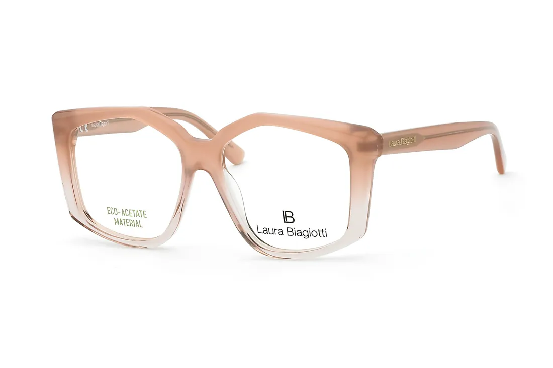 A Laura Biagiotti női szemüveg rózsaszín, áttetsző műanyag frontrésszel készült, amely környezetbarát eco-acetát anyagból áll, így kiváló tartósságot és kényelmet biztosít. Geometrikus formája modern megjelenést kölcsönöz, miközben a precíz kialakítás lehetővé teszi különféle optikai lencsék egyszerű és pontos illesztését. Ez a modell ideális választás szaküzletek számára, ahol a minőségi kivitelezés és a megbízhatóság alapvető követelmény. A rózsaszín szárak harmonikusan egészítik ki a keret stílusát.