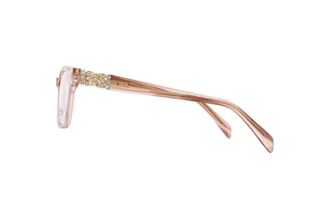 Ivision by Opticraft női szemüveg kiváló minőségű műanyagból készült, amely biztosítja a hosszú távú tartósságot és kényelmet. Áttetsző, szögletes frontrésze modern és elegáns megjelenést kínál, míg az arany és áttetsző szárak finom köves díszítése kifinomult részletként emeli ki a keretet. Teljes keretes kialakítása lehetővé teszi különböző optikai lencsék egyszerű és precíz illesztését, így ideális választás optikai szaküzletek számára.