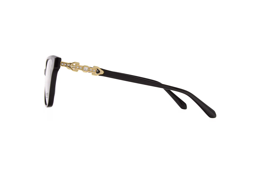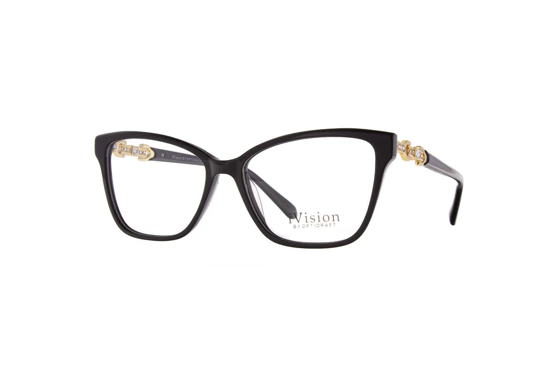 Ivision by Opticraft női szemüveg prémium minőségű műanyagból készült, amely tartósságot és kényelmet biztosít a mindennapi használat során. A fekete macskaszem formájú, teljes keretes frontrész modern megjelenést kölcsönöz, miközben kiválóan alkalmas különféle optikai lencsék pontos illesztésére. Az arany és fekete szárak finom köves díszítéssel egészítik ki a dizájnt, így ideális választás optikai szaküzletek számára, amelyek megbízható, stílusos és hosszú élettartamú kereteket kínálnak vásárlóiknak.