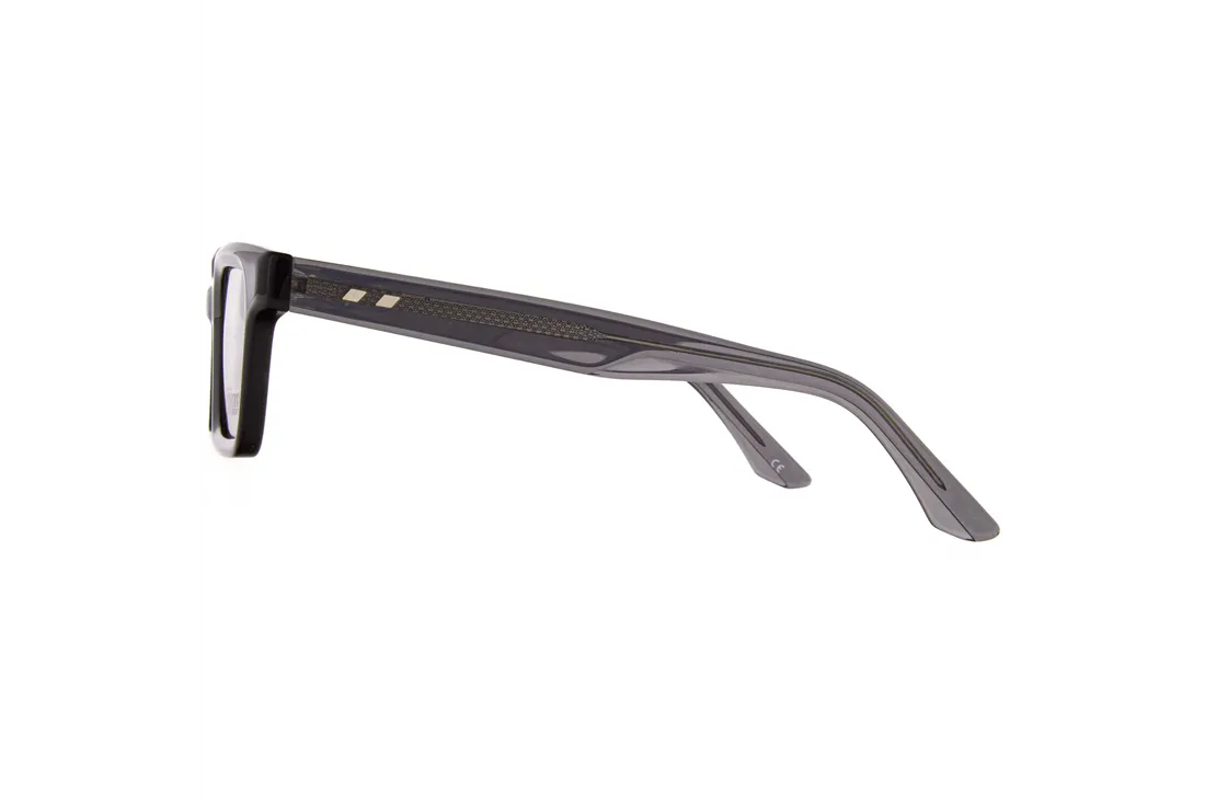 Az Ivision by Opticraft szemüveg modern, szögletes formájával és teljes keretével egyedi megjelenést biztosít mindennapokra. A fekete műanyag frontrész masszív és tartós, miközben könnyű viseletet garantál. A szárak fekete és szürke színkombinációja elegáns kontrasztot alkot, amely kiemeli a keret karakterét.