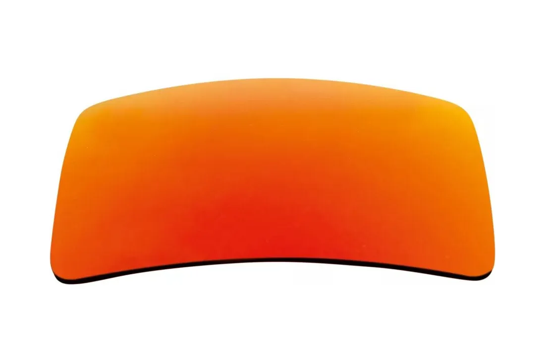 Dioptria nélküli, polarizált és UV-szűrős napszemüveglencse zöld átnézettel és piros–narancs tükrös külsővel. Tetszőleges keretbe csiszolható, kivéve fúrt vagy damilos modellekbe